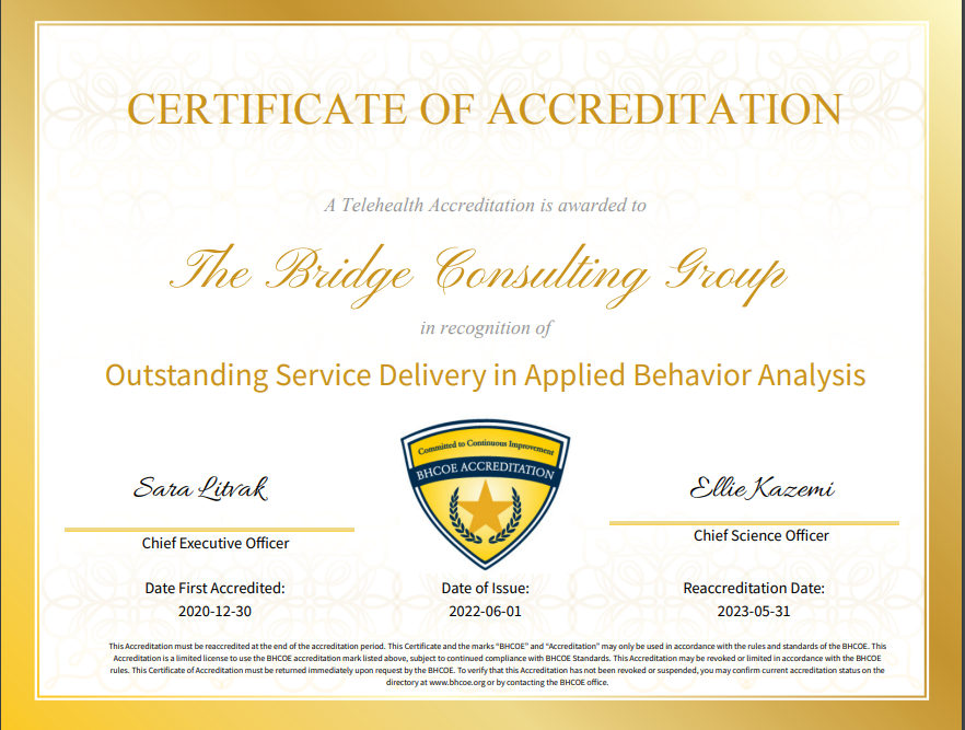 Welcome to The Bridge Consulting Group LLC, a bridge over the sea of suffering. We are your preferred partners in therapeutic services, providing expertise in Applied Behavior Analysis for children diagnosed with Autism and other related developmental disabilities.